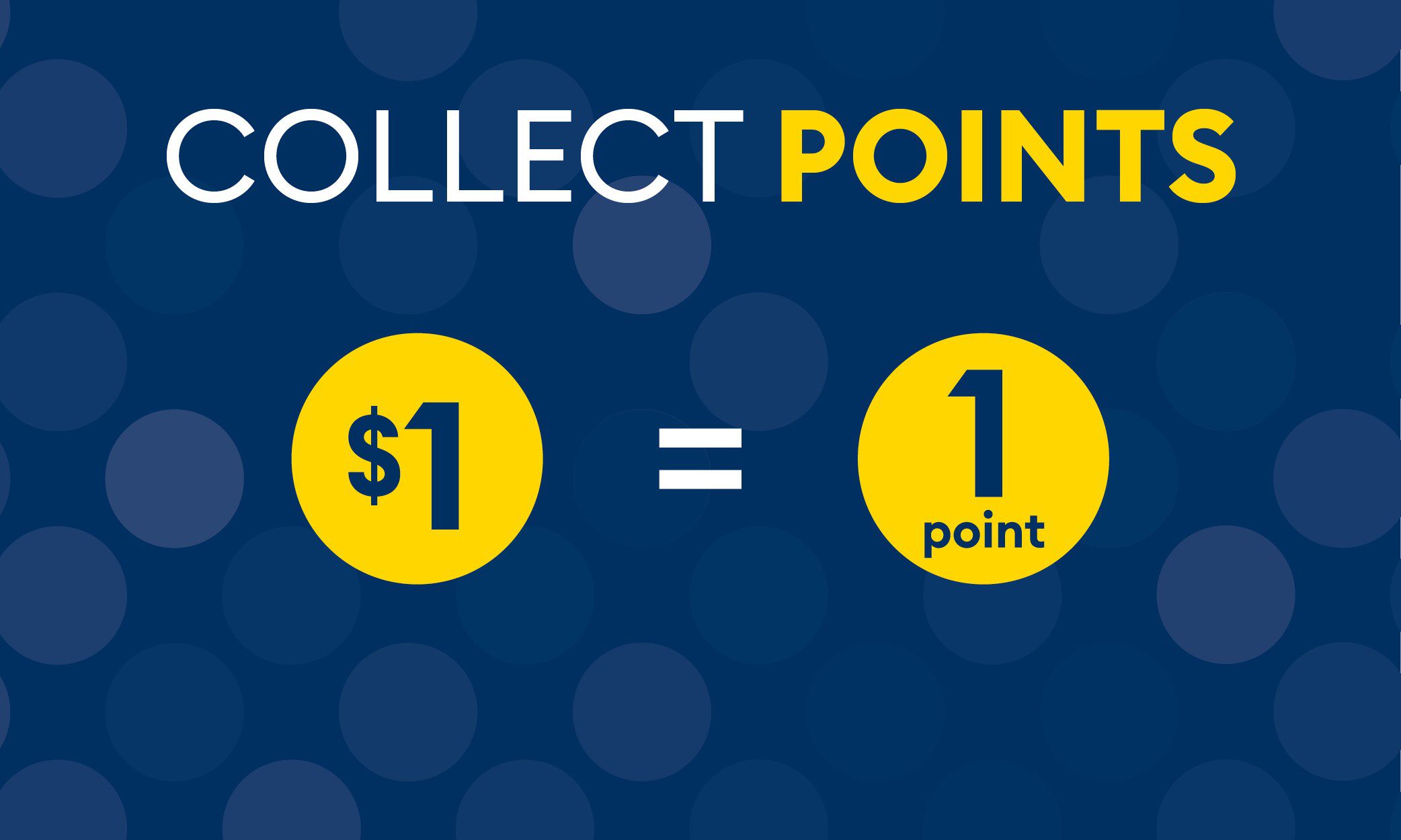 1) point offer with every purchase: $1 spent = 1 point earned;
