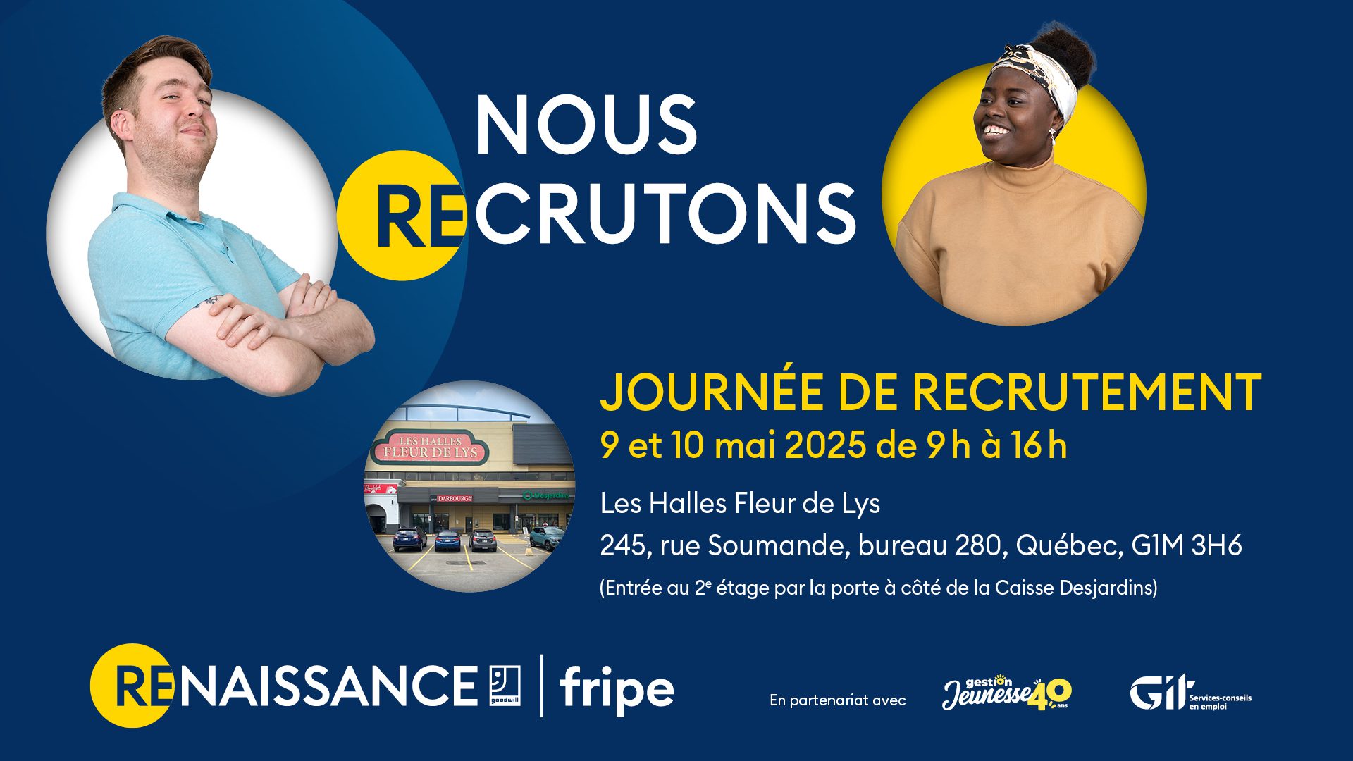 Notre nouvelle friperie et centre de dons ouvrira bientôt aux Halles Fleur de Lys. Plusieurs postes sont à pourvoir dès maintenant — c’est le moment idéal pour vous joindre à un projet porteur de sens.